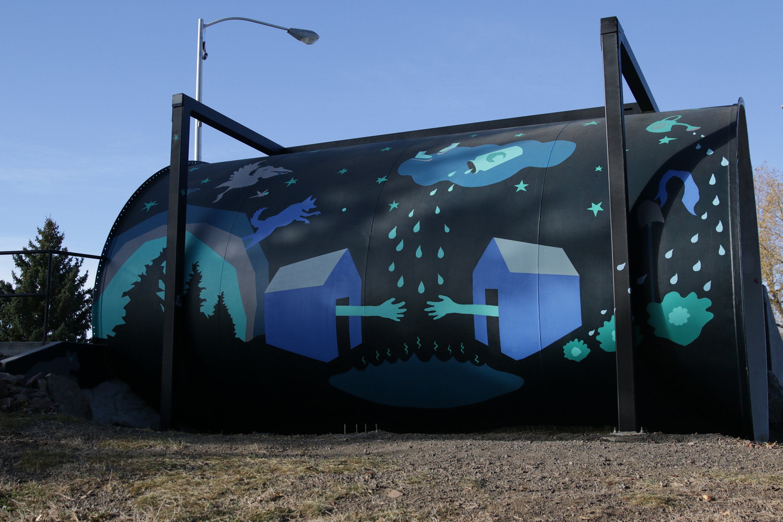 In 2020 I worked with Laramie Public Art Coalition and a group of four local nonprofits to design and complete a community-guided mural in LaBonte Park. The mural covers the skatepark’s full-pipe and includes imagery taken from Laramie’s collective memory of the area. Ideas for images were gathered through story collection in an online form and series of outdoor listening sessions, while draft designs received critiques from the four nonprofits. In this way the mural was rooted in a community-centered creative process which moved from learning and listening, to drafting and revising, to installing and completing. The project culminated with an outdoor celebration that fall.